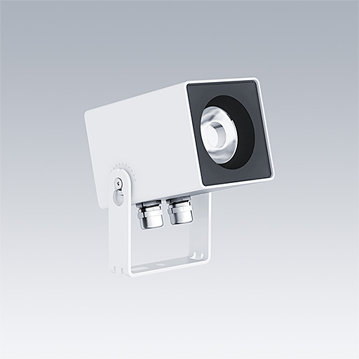 Projecteurs orientables apparents Caelon S pour l'éclairage de façades architecturales, de détails, de niches et de structures. Classe électrique I, IP66 avec. Équipés du convertisseur Sortie fixe. Corps : aluminium Moulage sous pression blanc. Vis en acier inoxydable. Température ambiante : -20°C à +25°C. Livré avec LED 3 000 K.