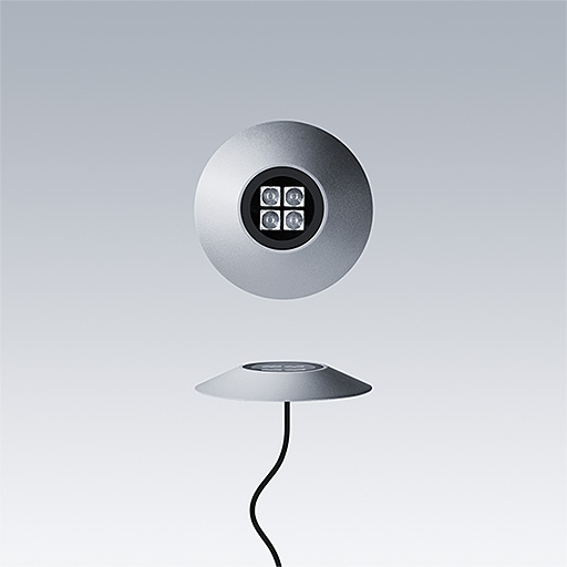 Cesar Bow plafonnier, luminaire à LED pour l'éclairage décoratif des façades, avec et distribution faisceau large. Classe électrique III. Convertisseur à distance DALI2. IP67, Résistance aux impacts : IK07. Boîtier : aluminium Moulage sous pression, thermopoudré texturé gris. Température de service de Température ambiante : -20°C à +40°C. Livré avec LED 2 700 K.