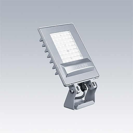 Projecteur LED compact, Small ultra-léger avec optique asymétrique. Classe électrique I, IP66, Résistance aux impacts : IK07. Corps : aluminium Moulage sous pression Gris pâle 150 sablé et texturé (similaire à RAL9006).. Fourche : aluminium. Fermeture : Polycarbonate (PC). Pré-câblé avec un câble lg. 60 cm. La fourche peut être fixée par un boulon M10 et/ou deux boulons M8, elle est orientable et réversible pour permettre différentes positions de fixation. Livré avec LED 3 000 K.