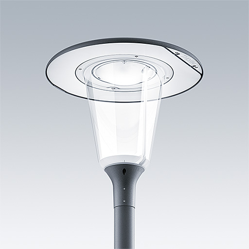 Lanterne LED discrète, à montage top, avec une conception intemporelle. Driver pour 18 LED, entraînés à 350mA avec une distribution Radialement symétrique. Classe électrique II, IP66, IK10. Capot et socle : aluminium Moulage sous pression thermopoudré résistant à la corrosion et adapté aux environnements C5, finition texturé gris anthracite 900 sablé. Boîtier : Polycarbonate (PC) large anti-UV avec finition transparent. Équipé d’un diffuseur interne pour réduire les éblouissements. Equipé d'un circuit de réduction de puissance 50 %, qui entre en vigueur 3h avant et 4h après un minuit calculé. Peut être désactivé à l'installation par un interrupteur interne facilement accessible. Dispositif de protection contre la surtension 10 kV. Livré avec LED 3 000 K. Montage top sur mât de Ø 76mm. Pré-câblé avec 6 m de câble.