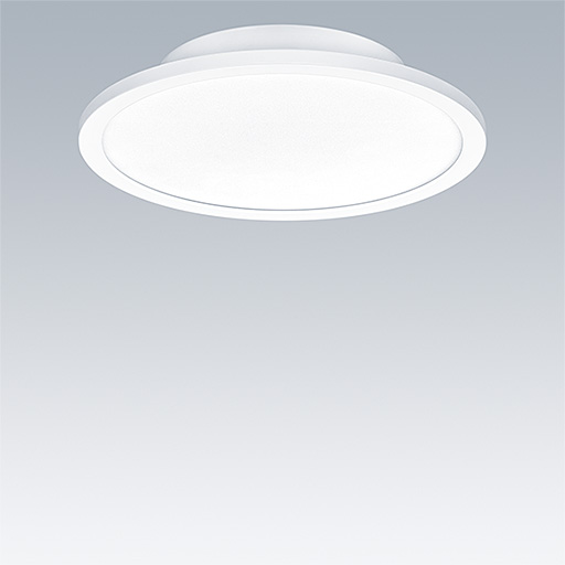 Dalle circulaire polyvalente pour encastrement dans une découpe de Ø200mm. Electronique, non gradable.Classe électrique I, IP20. Corps : aluminium et acier, blanc (RAL 9016). Diffuseur : acrylique opale. Livré avec LED 3 000 K.