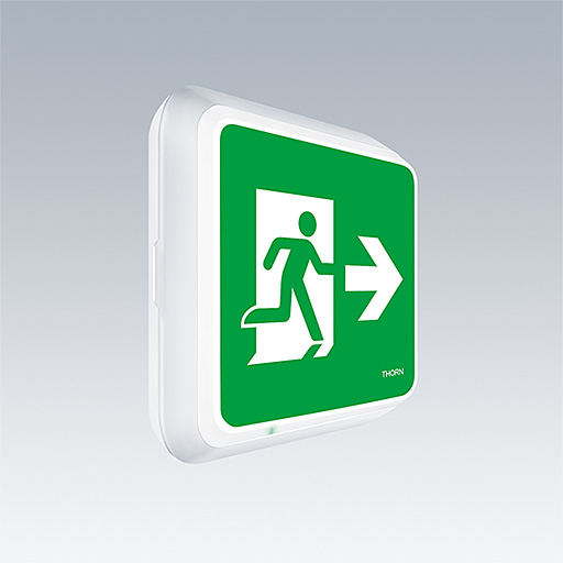 Luminaire à panneau de sécurité LED carré, plafonnier. Luminaire pour alimentation centralisée de l'éclairage de sécurité avec surveillance du circuit électrique sans surveillance individuelle du luminaire. Interface NFC pour la maintenance via PROset Pen (article : 22170290) ou PROset app. Alimentation : 220-240 Vca (± 10%), 50/60 Hz ; 176-280 Vcc. Corps : Polycarbonate (PC) moulé par injection, blanc (RAL 9016). Diffuseur : Polycarbonate (PC) opale, avec pictogramme flèche directionnelle (droite) de sortie de secours imprimé et collé, conformément à ISO 7010. Rétro-éclairage uniforme du pictogramme, luminance > 500 cd/m² dans la partie blanche et 200 cd / m² en moyenne dans la partie secteur (conformément à DIN 4844), 2 cd / m² minimum en mode de secours (conformément à EN 1838). Distance de reconnaissance conforme à EN 1838 : 44 m. Classe électrique II, IP65, Résistance aux impacts : IK10. Température ambiante : -30°C à +35°C. Convient pour fixation directe au mur. Câblage à piquage/repiquage possible pour les câbles de jusqu’à 2,5 mm². Compatibilité BESA. Certificat alimentaire (à utiliser dans les zones avec des aliments entièrement emballés). Luminaire câblé avec des fils sans halogène et sans silicone. Luminaire avec symbole D (pour utilisation dans les environnements où l’accumulation de poussière conductrice sur le luminaire peut être attendue).