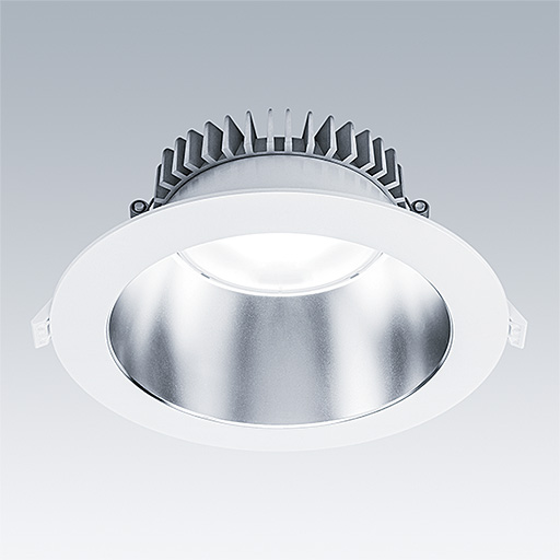 En grund, infälld LED downlight som lämpar sig för okomplicerad renovering och snabb inledande installation i tak med Ø190-230 mm-hål. Fjärrstyrt och anslutningsbart LED-driftdon med Fast ljusflöde med DC-funktion, justering 15-100 %, NFC-konfiguration. Överkoppling möjlig. Stomme: Pressgjuten Aluminium för värmehantering. Kupa: Polykarbonat (PC), slät reflektor med (okänd) matt finish och bred ljuskägla. Reflektor och dekor: högreflekterande Polykarbonat (PC) av hög kvalitet. Elektrisk klass II, IP20. Fjäderklämmor som lämpar sig för taktjocklek mellan 1 och 35 mm. Levereras med 3000K LED