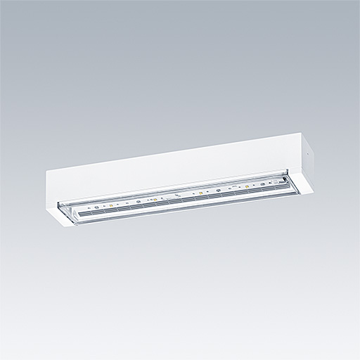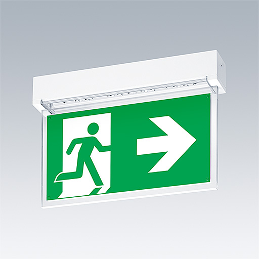 Tunn IP65-klassad LED-nödljusarmatur för yt-, vägg- eller takmontering. Klickadapter för ytmontering i vägg möjlig. Infälld montering möjlig med monteringsram (tillval). Armatur för central nödbelysning med kretsövervakning, ej enskild armaturövervakning; ; ; Ledningslängd från nödströmskällan till sista armaturen max. 300 m. Ytterligare klickoptik som är optimerad för utrymningsvägar och öppna områden med hög monteringshöjd möjlig. Klickbara piktogram som är synliga upp till 23 och 30 m finns tillgängliga för konvertering till armaturer för utrymningsvägar. Huset är tillverkat av vit polykarbonat och höljet är tillverkat av transparent polykarbonat. Verktygsfri klickmontering efter montering av husets bas. Snabbkopplingsplint med ledningsdragning upp till 2,5 mm². Underhållsfri LED-teknik. Livslängd: 50 000 h vid konstant ljusflöde. Märkspänning: 220/240 V. Systemeffekt: 5,6 W. Kapslingsklass: IP65. Skyddsklass: SC2. Slagtålighet: IK03. Mått: Dimensioner: 336 x 54 x 59 mm. Vikt: 0,6 kg