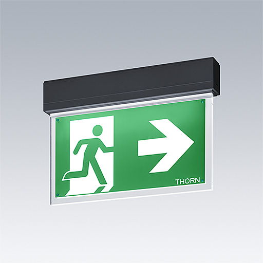 Mycket tunn nödbelysningsarmatur för Dikt tak eller vägg. Infälld takmontering är möjlig med infälld takram som tillval, Armatur med lokal batteriförsörjning för 3 timmars nödljus i konstant eller icke-konstant läge, automatisk test (auto-test) via armaturen och visning av armaturens status med status-LED. Huset är tillverkat av svart Polykarbonat (PC). Enkel installation av armaturen. Snabbkopplingsplint med genomföring upp till 2,5 mm². Levereras med en uppsättning monteringsbara ISO 7010-riktningsskyltar (vänster, höger, upp, ned och blank) som kan ses från ett maximalt avstånd på 30 m. Skyltarna monteras med diskreta sprintar. Underhållsfri LED-teknik. Livslängd: 50 000 h vid konstant ljusflöde. Enhetlig bakgrundsbelysning av piktogram. Luminans > 500 cd/m² i det vita området. Effekt: 220/240 V AC. Systemeffekt: 7,2 W. Skyddsnivå: IP43. Skyddsklass: Elektrisk klass II. Slagtålighet: Slagtålighet IK03; Dimensioner: 341 x 37 x 230 mm; Vikt: 1 kg
