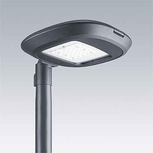 En mycket mångsidig LED-armatur med Smal gatubelysning, asymmetrisk distribution. Elektronisk driftdon utan ljusreglering driver 12 LED på 700mA. Kompatibel med PL, LRT och Nema-sockel med 7 stift. Elektrisk klass II, IP66, IK10. Armaturhus och utliggare: Pressgjuten Aluminium (EN AC-47100) pulverlackerad antracit (liknar RAL7043).. Hölje: 6 mm tjock klar glas. Levereras med 4000K LED. Stolptoppsmontering på stolpe med 60 mm diameter, lutning 5°, justerbar från 0° till +10°.